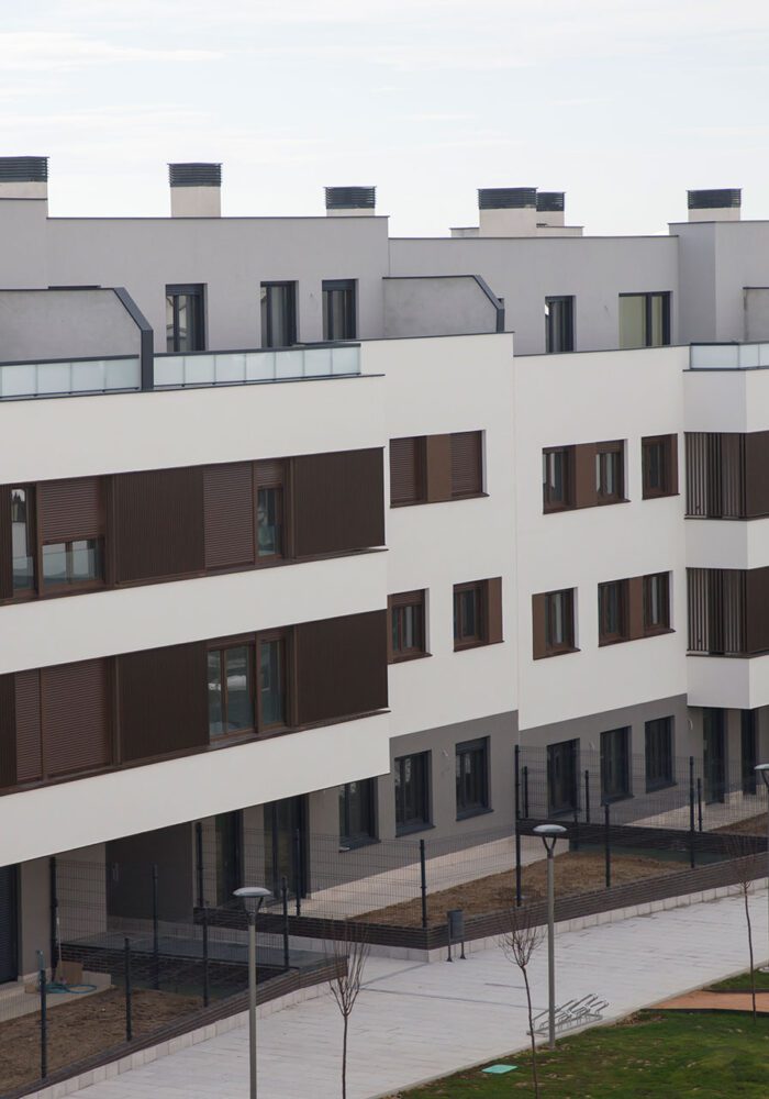 Conjunto residencial de 87 viviendas VPPB + VPPL con garaje, trasteros, y piscina en el Barrio de San Juan de Navalcarnero (Madrid).