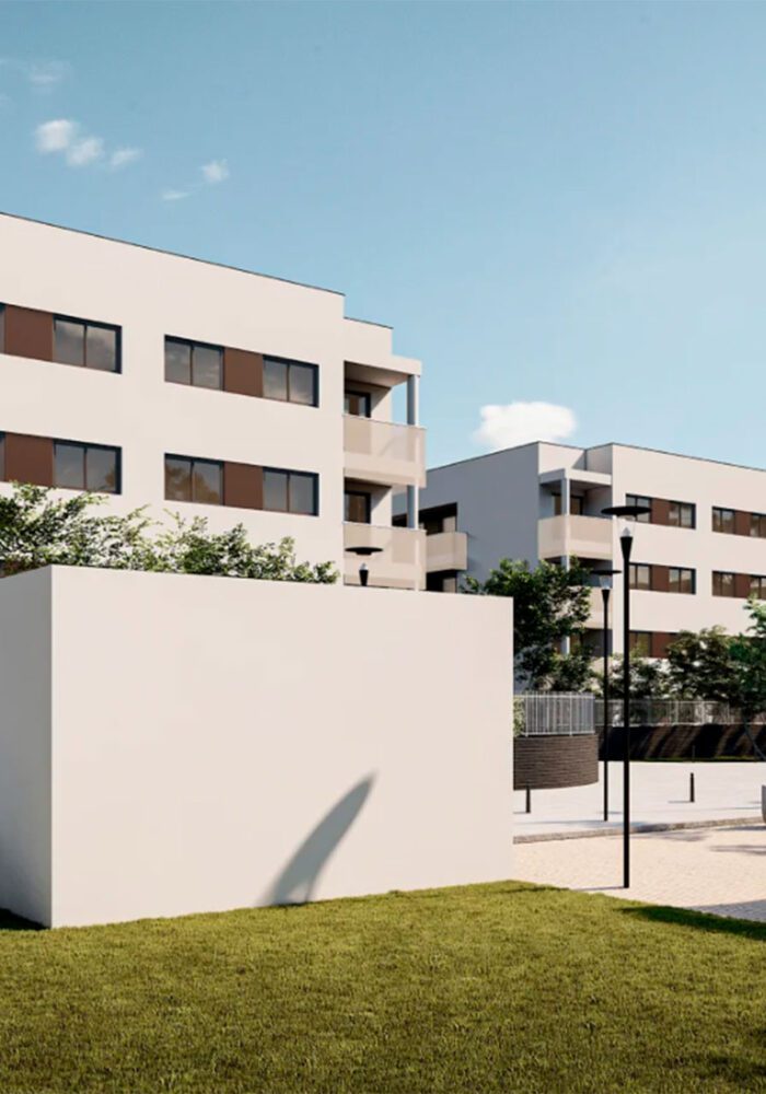 Conjunto residencial de 216 viviendas VPPL, garaje, trasteros y piscina en el Barrio de San Isidro en Navalcarnero (Madrid).
